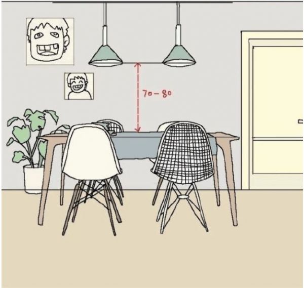 13.餐厅灯最好在餐桌上方70-80厘米左右的位置,太高会采光不足,太低光线太强,都会阻碍到视线。