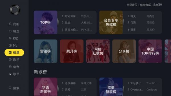 小伙伴们常用的听歌,K歌软件又是哪个呢,K歌软件哪款比较好呢?其实利用手机K歌来说,电视家庭K歌软件其实更受欢迎,例如:当贝酷狗音乐。究其原因就是它的使用体验战略的绝对成功,每首歌都是无损音质和内置版权库的强大。