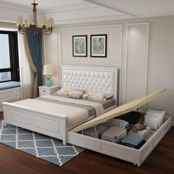 新式抽拉床,尤其适合小户型,美式软包床头,时尚美观,拖床抽拉方便,床板牢固。收纳空间很大,贴心为小户型考虑。