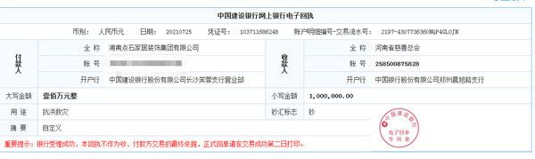 河南多地突如其来强降雨,令河南灾区人民深陷洪灾。灾难无情,同胞有情。闻讯,各行各业纷纷响应驰援。7月25日,点石家装,将100万元善款转至河南省慈善总会账号。