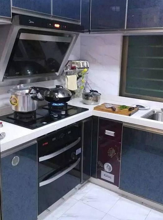 厨房跟餐厅相比就完全不是一个档次了!因为这个橱柜是我专门找人定做的的,品牌货就是不一样,大气多了!