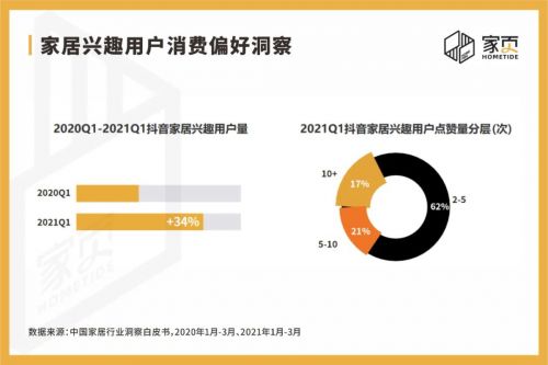 随着消费者决策链条的变化,直接带动了平台和企业的变化。抖音平台对家居内容感兴趣的用户一季度同比增长34%,住小帮过去一年注册品牌号数量增加3.6倍。