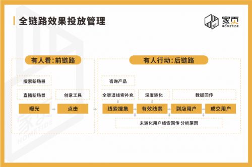 借助互联网平台的能力,家居营销正在从依靠经验转化为通过数据进行科学决策,数据的度量将用户群体画像、决策路径直观地呈现在企业决策者面前,进而帮助企业进行降本增效、预算分配,完成整个营销系统的搭建。