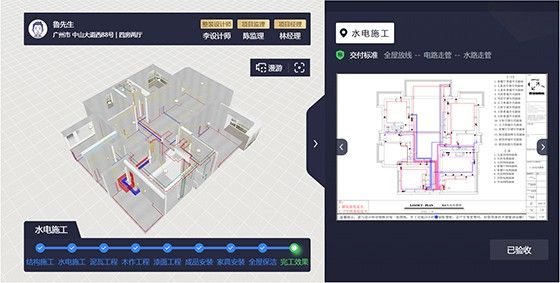 在这个系统里,客户要装修,就会按照预先设计好的数据完成,这些数据都预先植入后端,说白了,就跟你现在去哪不再需要地图,而只需要导航一样。