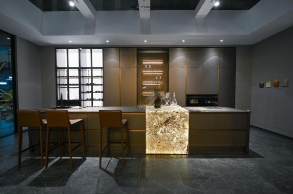 除了令人称道的产品让皮阿诺备受关注外,其场馆设计也功不可没,此次建博会皮阿诺延续了展馆设计简约、有格调的一贯风格,打造了一个轻奢时尚,具有较高潮流审美、视觉感召力的展馆,并在展馆中庭独具匠心地设置了“A”字母创意展示架,下方则是黑白钢琴键布置,配合上方的闪耀吊灯,整体展示装置更具个性,进一步强化皮阿诺“A”元素视觉锤,彰显了皮阿诺追求卓越品质的品牌格调。