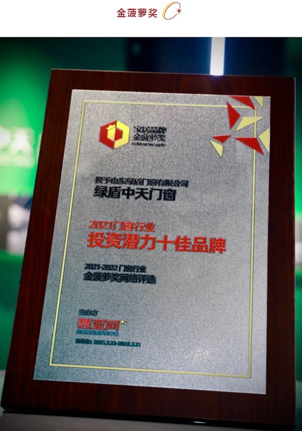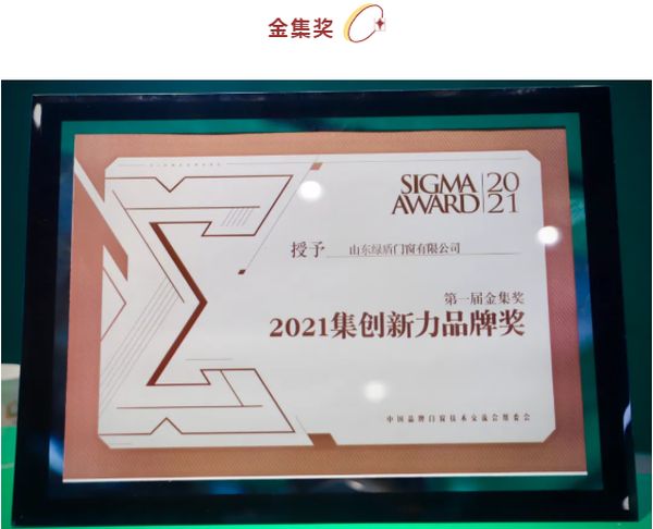 展会期间,在“2021第五届中国家居品牌大会”荣获「2020-2021十大优选门窗品牌」,在“2021金集奖(SIGMA AWARD)”与“金菠萝奖”的颁奖典礼上,绿盾中天门窗一连斩获了「2021集创新力品牌」与「2021门窗行业投资潜力十佳品牌」。