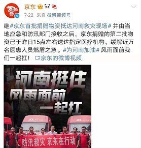 6、电商行业京东、唯品会等企业。河南当地汛情发生后,京东从距离最近的郑州亚一智能仓库紧急调拨大批铁锨、救生衣、雨衣、胶鞋等防汛物资以及矿泉水、方便面、火腿肠等生活物资,由京东物流紧急驰援受灾地区;唯品会宣布向中国扶贫基金会捐赠2000万元,用于河南地区紧急救援和灾后重建,驰援河南抗击洪涝灾情。