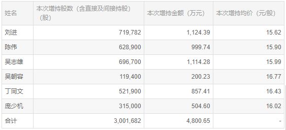 公告显示,帝欧家居股份有限公司控股股东、实际控制人刘进先生、陈伟先生、吴志雄先生;公司董事、董事会秘书、副总裁兼财务总监吴朝容女士;公司核心管理人员丁同文先生、庞少机先生基于对公司发展前景的坚定信心,拟在该公告披露之日起3个月内以自有或自筹资金,通过深圳证券交易所交易系统增持公司股份,增持总金额合计不低于5,000万元。