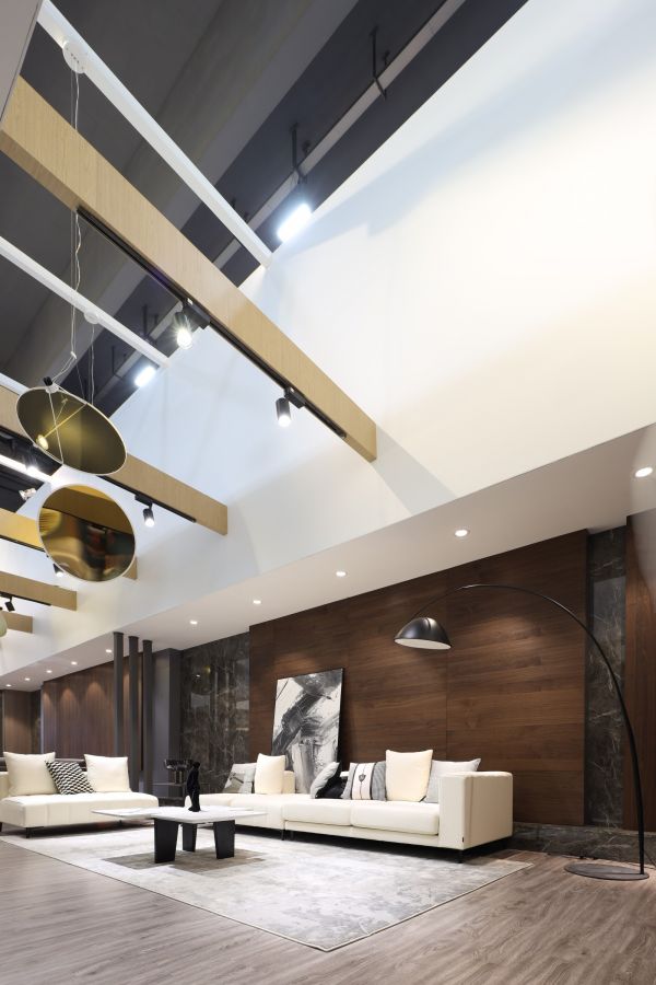 左尚明舍位于广交会展馆B区11.2-12展厅,双层展厅设计融合自然、建筑、人居的多重理念,吸引着众多人驻足观赏。展厅一层以开放式空间,全方位展示内部的真实景象。展厅二层形似巨大漏斗,将自然光与时光凝聚于此,引发人们关于自然与生活的深思。