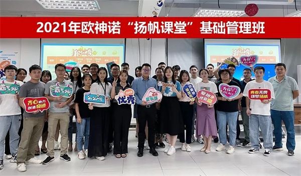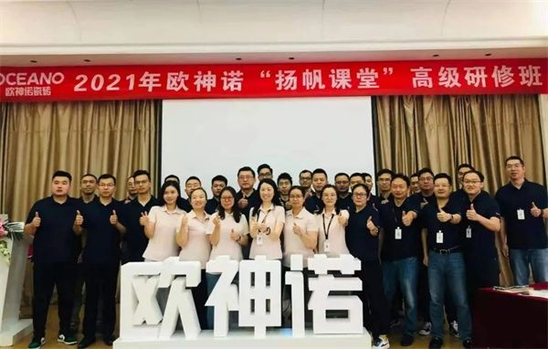 2021年,欧神诺延续“扬帆课堂”的质量口碑,相继开展了“扬帆课堂”高级研修班和基础管理班,定向培养管理层人员。加强欧神诺内部人才梯队建设、打造学习型组织,对于欧神诺来说,不仅仅是停留在纸上,更是切实投入成本、付诸行动、追求成效的企业文化建设实践。