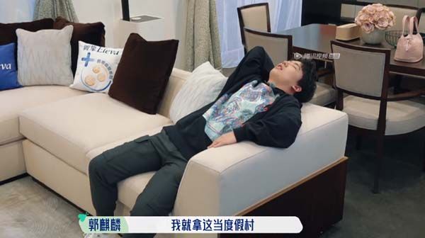 经过一天的陌生社交,郭麒麟在美克美家的沙发里完全放弃明星形象,放松躺平的真实状态,让观众忍不住也想拥有同款“躺平”体验。