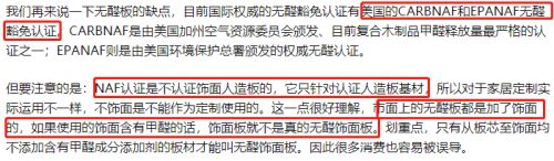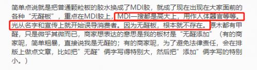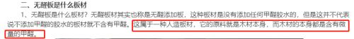 而所谓的无醛板家具,只是采用无甲醛工艺而已,商户在介绍时断章取义以此来混淆认知让人理解为无醛板就是不含甲醛的,很多消费者会被因此误导。(下图引自:pchouse专区、知乎平台)