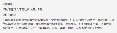 为了证实异氰酸酯的危害性,我们还咨询了相关问诊平台的在线医生,得到的回答与我们的观点相符。(下为春雨医生在线问询平台引证)