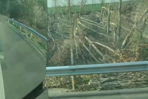 傍晚18:25,看见沿途树木被吹倒场景,我们心如刀绞