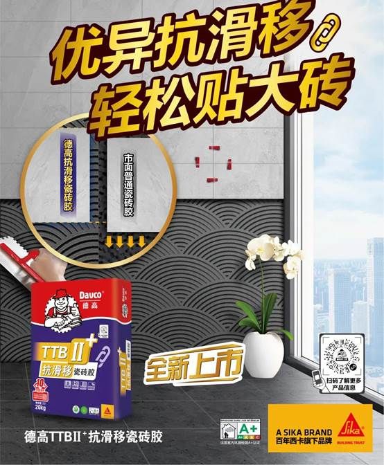 已在德高连锁云店小程序陆续上架的——德高TTBⅡ+抗滑移瓷砖胶,具有优异的抗滑移性,能强力粘结低吸水率的瓷砖,避免下坠现象。