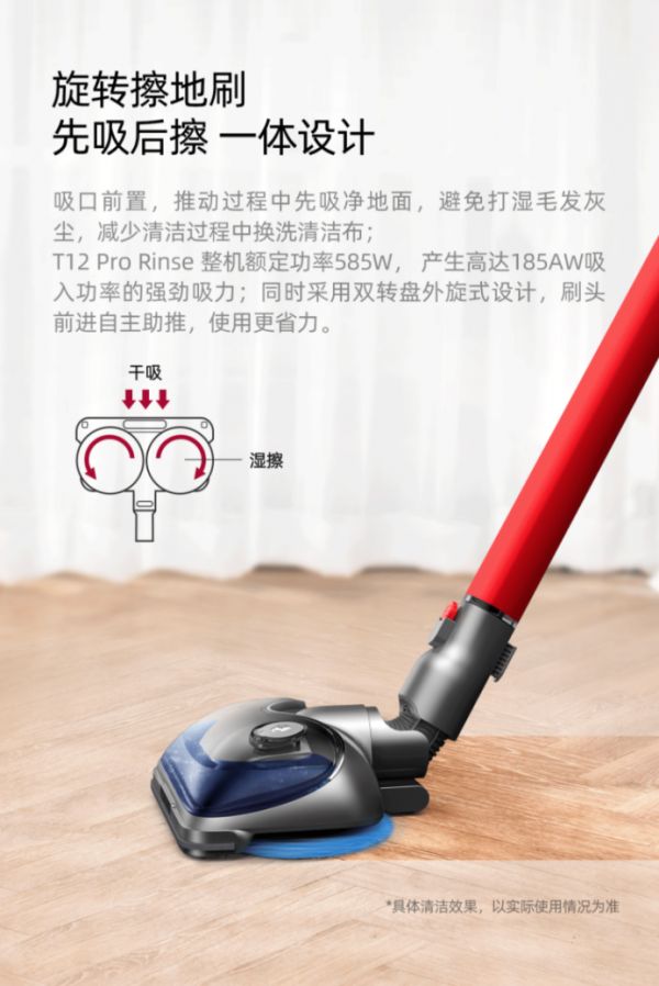 国内家庭铺设的大多是硬质地板或地砖,普遍采取先扫地再湿擦的清洁方式,面对顽固污渍还需要用力擦拭,一场清洁下来费时费力。小狗T12 Pro Rinse擦地吸尘器搭载旋转擦地刷,简化地面清洁流程,吸尘+擦地同时完成,取得事半功倍的效果。这也是很多用户被小狗T12 Pro Rinse种草的原因,实际体验更佳,在各大电商平台上斩获无数好评。