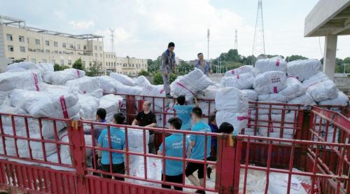 (迅达捐赠物资装车现场剪影)