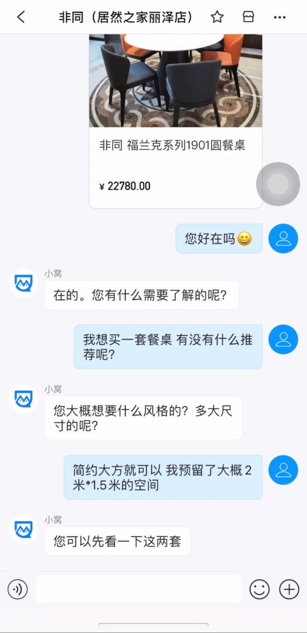 与传统网购只有客服回复不同的是,在这上面可以与店内专业导购进行沟通。沟通更加顺畅的同时也能解决实际问题。在线上挑选好商品之后,直接下单有点不放心的话,还可以一键免费打车到店。