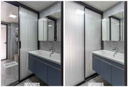 将洗手台与淋浴区用推拉门隔开,来达到干湿分离的效果,这样一来就能解决卫生间的潮湿问题,还能提高卫生间的使用效率。