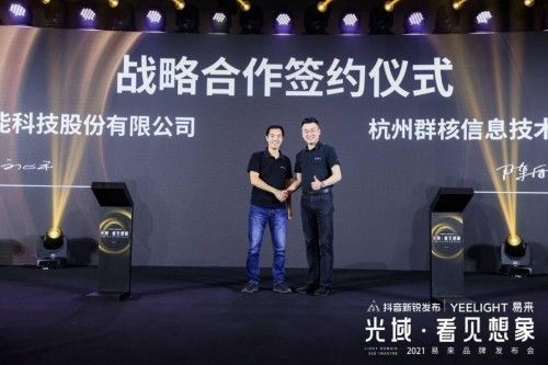 7月20日,在第二十三届中国(广州)建博会Yeelight易来品牌发布会的现场,Yeelight易来与酷家乐举办了战略合作签约仪式,Yeelight易来联合创始人兼CEO姜兆宁、Yeelight易来联合创始人兼总裁刘达平,以及群核科技(酷家乐)联合创始人兼CEO陈航、群核科技(酷家乐)华南分公司总经理余飏等作为双方企业代表出席签约。