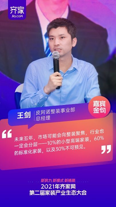 作为专注定制家具领域的头部企业,皮阿诺整装事业部总经理王剑先生,以不同视角分享了他对行业发展趋势看法。