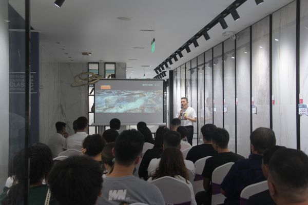 在感受完诺贝尔岩板寻纹记产品的精美之后,设计老师们进行了广泛交流,设计大咖王老师以自己的行业经验和生动案例与在场嘉宾进行了分享和讨论,从产品应用,设计理念,顾客需求等角度讲述他对诺贝尔岩板的理解和探索,精彩的发言获得了大家的阵阵掌声!