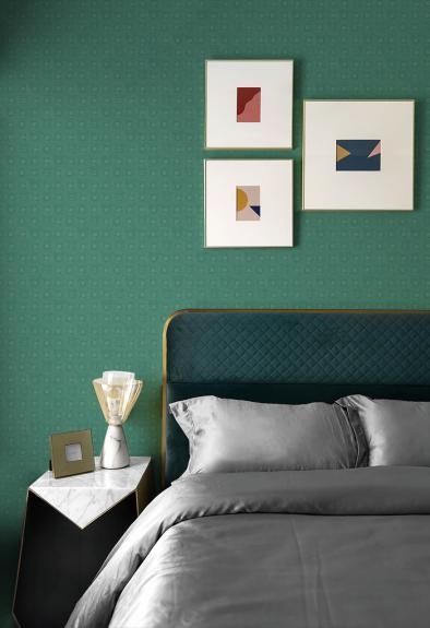 墙面选用绿色系,搭配灰金的软装,低调而不失格调。