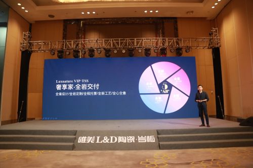 在介绍年中新品之前,唯美L&D陶瓷总经理 吴阳首先代表品牌放了个“大招”——隆重推出“奢享家·全岩交付”服务。