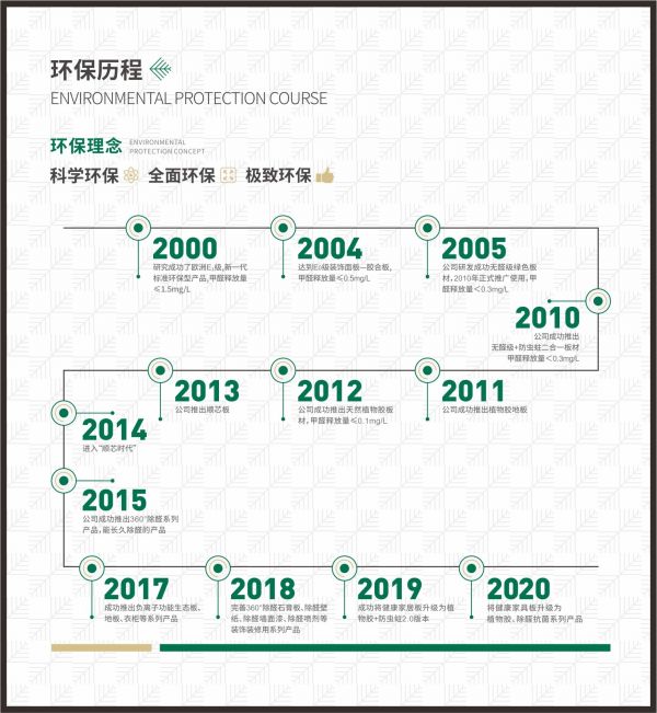 能够在环保赛道上跑出当前的优势,兔宝宝经历20多年的深耕,2000年时,成功研究出欧洲E1级环保产品,甲醛释放量≤1.5mg/L;随后用了11年时间,将甲醛释放量控制到≤0.1mg/L。2005年是个里程碑,研究出无醛级的绿色板材,随后以无醛为主线,陆续发布无醛级+防虫蛀二合一、天然植物胶、顺芯板等产品。
