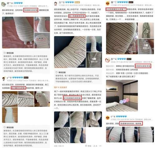 在乐瓜睡觉抱枕的产品评论区,“睡得很舒服”“睡得很香”成为消费者使用乐瓜睡觉抱枕后的首要关注及普遍感受。