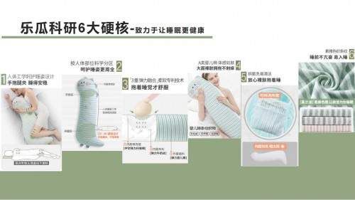 乐瓜睡觉抱枕作为中国睡眠研究会单位会员,秉持着科学严谨的态度,经过1年多的走访调研、三年间数次产品打磨迭代、经过反复实验,开发出对于侧睡、趴睡、仰睡等睡姿都有着呵护作用的睡姿呵护产品,打造出如今全网热销139999+的乐瓜睡觉抱枕。