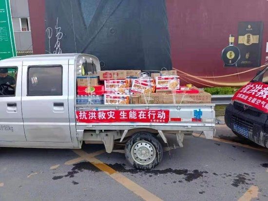 二、在此次暴雨中,河南新乡受灾严重。生能公司在得知情况后,第一时间筹备新乡急需的食物、矿泉水、皮划艇、面板等抗洪救灾物资,并于7月24日将4车救灾物资送到受灾严重的新乡市卫辉县。
