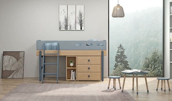 FLEXA/芙莱莎POPSICLE蓝莓色调和了恰到好处的灰度,使原本单一的颜色有了温度,仍然保持蓝色特有的沉稳和安静的同时,也增加了酷酷的高级感。FLEXA/芙莱莎除了家具本身采用了难得一见的蓝莓色。在床品、窗帘以及壁纸上也能找到与之搭配的色调。 POPSICLE系列窗帘具有良好的遮光效果,遮光度在60%的面料,不仅有自然遮光效果,其密度紧实,可以有效隔热降噪,在夏季给儿童宁静舒适的环境。窗帘含10%天然亚麻成分的底材,使用环保印花,刻画出活泼可爱的图案和色彩,鲜活不刺眼,柔和的色调更适合儿童休息。