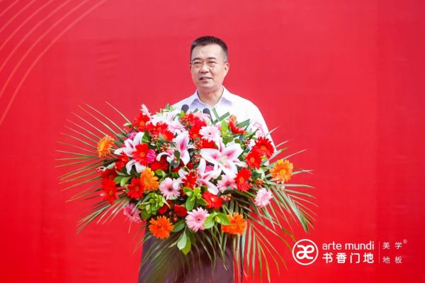 ▲书香门地集团董事长卜立新在木业生态城奠基仪上致辞