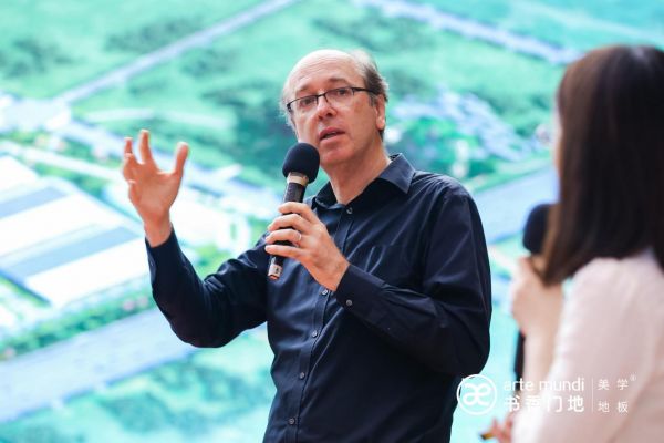 ▲法国夏邦杰建筑设计事务所合伙人、中国区设计总监Pierre在产业发展峰会阐述园区设计概念