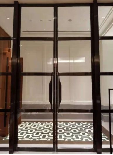 前厅、宴会厅各入口的大门会给客人留下深刻的印象采用超5米高大门,采用亚萨合莱旗下RIXSON Model H28重型悬挂系统,最大承重1000 lbs,通过ANSI156.5/BHMA一级认证,关门和锁闭速度可调,延时关门功能可选,使用效果和外观达到了完美结合。现场安装效果大气,不但起到承重的作用,而且提升了空间的精致感