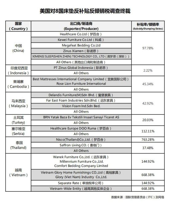 中国要和平崛起,但一些国家往往怀着傲慢和偏见诸多刁难阻碍,美国屡屡举起贸易大棒,压制中国企业发展。近日一篇《3万张席梦思床垫将何去何从?》的文章在网络热传,今年4月,美国对中国床垫制造商及出口商进行反补贴终裁,补贴税率97.78%,梦百合、喜临门、慕思、席梦思等品牌商产品出口大受影响。