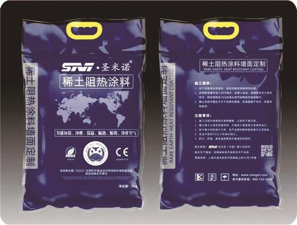 圣米诺(中国)稀土研究所采用国内最优质的内蒙古白云鄂博、“稀土矿”按科学配方和严格工艺生产出最新一代功能性壁材,它不仅自身不含甲醛等有毒有害物质,而且能够永久性吸附和分解,用特殊工艺将多种纳米半导体材料负载到阻热涂料上,一方面当甲醛等有害物质被稀土吸附后,用接触式和非接触解决了粘合与抱团难题,将接触式、非接触式两种分解方法相结合,再加入特种稀土纳米材料,生产出具有世界领先水平的功能性墙面环保涂料,它具有无毒无害、永久净化、防霉、节能环保,释放负氧离子和阻隔紫外线、红外线的功能,应用领域,内墙、外墙、彩钢瓦房顶、楼顶、集装箱、保温罐及其他需要保温隔热场所。