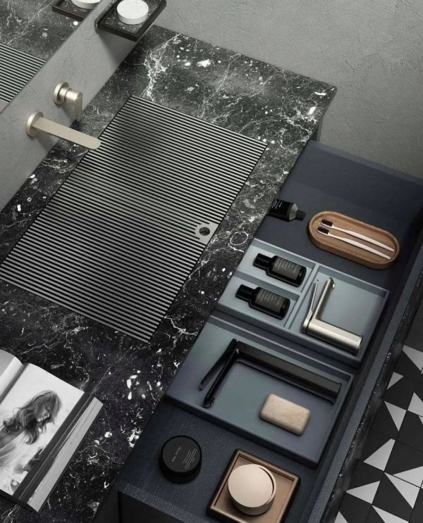 Ell纤薄的外形使其看起来像一幅细长的线条画,整齐划一的格栅线条搭配平整细腻的台面,简约中彰显严谨的设计秩序,给人以独特的美学体验。格栅线的设计解决了台盆在使用过程中水流溅出的问题,做到了台盆在水平纤薄的完美体态下,依旧提供非凡的使用体验,达到了设计与使用功能之间的完美平衡。