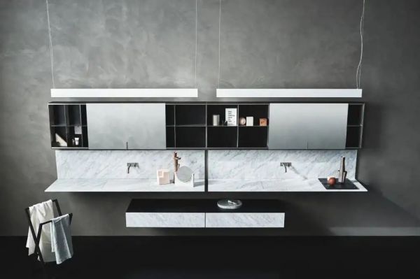台盆可以根据洗漱区的大小定制合适的尺寸,最小长度为80厘米,最大长度为260厘米,有单池、双池和三池三种不同的规格可以选择,满足多样化的户型需求。灵活多样的解决方案使得空间在理性的架构中拥有更多的创新空间,从而传达出独一无二的精致品味。