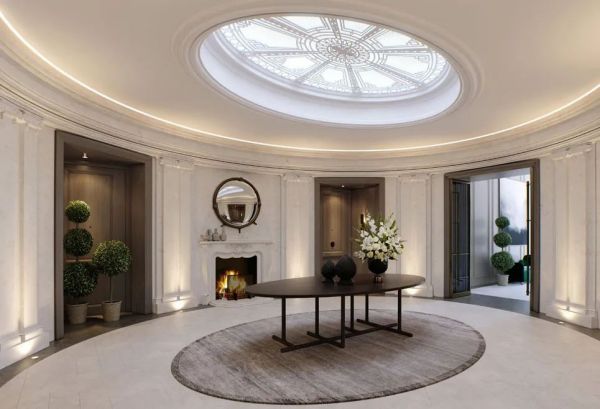 为了保留格罗夫纳广场一号的厚重历史,开发商Lodha UK珞达聘请英国顶尖建筑大师Eric Parry,由他一石一砖精心解构,编码复原建筑外观。陶立克圆柱、装饰华美的拱门、古希腊式横条装饰,从廊柱到门窗,再现其新乔治王时期建筑风格与新古典主义的特征。