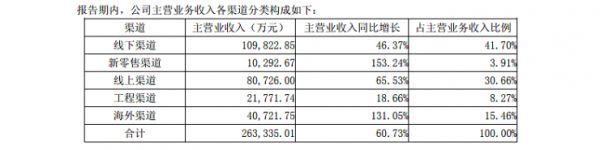 根据报告显示,2021上半年新零售渠道营收1.03亿元,虽然占比仅为3.91%,但却实现同比增长153.24%。