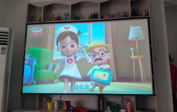 首先外观不错,体积也不大,价格尤其实惠,只需2499元。2000光源流明,1080P分辨率可兼容4K还能看3D,支持投出30—100寸高清大屏,开机速度约8秒时间,并且使用全程无广告。