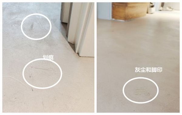 时间久了表面会出现气孔,毕竟水泥本身特质如此,出气孔也很正常;不耐脏,除非能实现无尘空间,否则稍微踩点脚印、有点尘土都相当明显;容易出现划痕;地面、墙面划痕明显,看起来不美观;