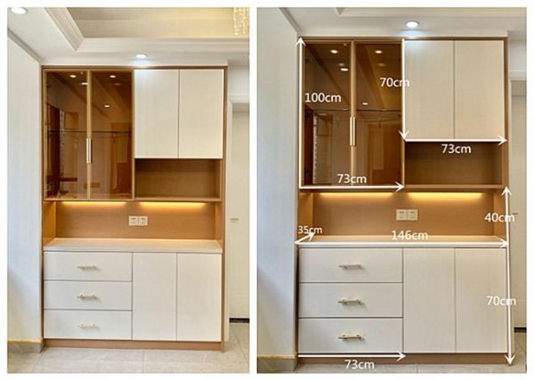 餐边柜设计成顶天立地的样式,确实非常好看,也扩增了储物空间,但是并不实用。