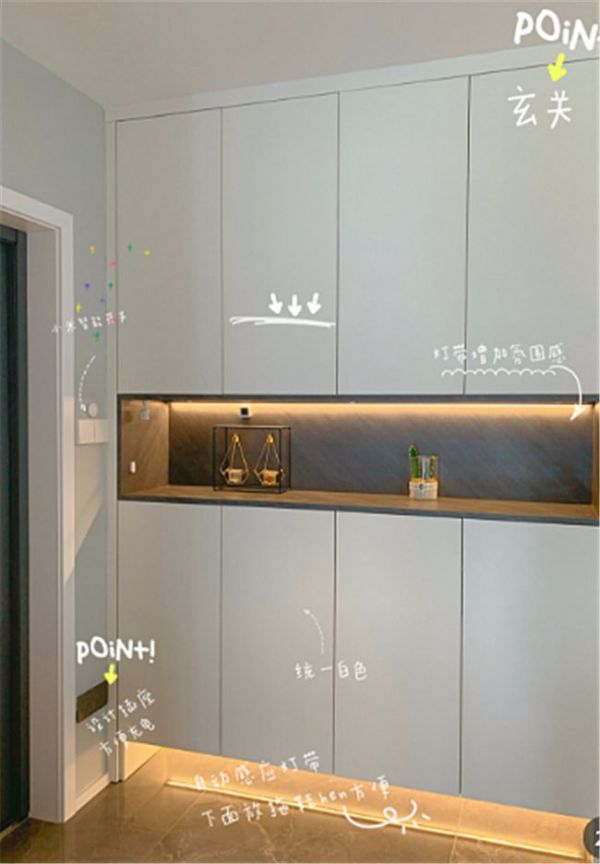 其实包括玄关柜也是如此,中间、底部留空后,反而比通顶好看,这个我之前也介绍过,有兴趣大家可以详细看看。