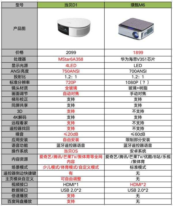 璟甄M6投影仪好吗?和当贝D1相比,哪款投影仪性价比更高?