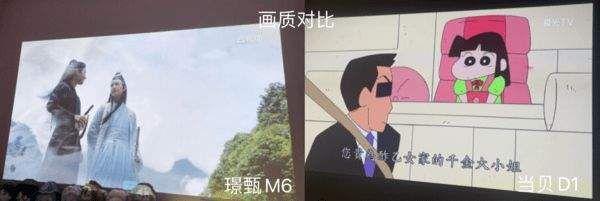 小编选购投影仪,除了看画质,还看的是他的配置与系统。就配置来说,璟甄M6采用的华为海思芯片,当贝D1采用的高端电视级的MStar 6A358芯片,芯片的好坏是能直接影响投影仪的画面效果。从下图两款投影仪的画质对比,大家就可以发现,当贝D1的芯片有多强劲。