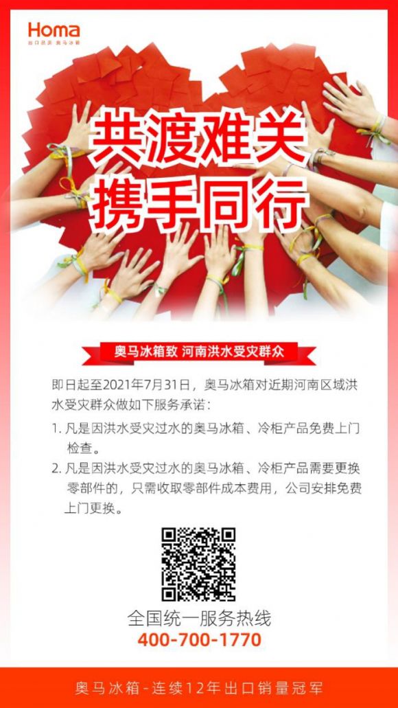 对于河南省暴雨洪水受灾和浙江绍兴诸暨市枫桥镇洄村台风“烟花”受灾事件,奥马冰箱的相关负责人这样说道:“出现这样的天灾事情是谁都不想看到的,当得知有人民需要帮助时,任何人都会伸出援手,奥马冰箱也不例外,我们希望能够帮助受灾人民尽快走出困境,为他们做一些力所能及的事情这是我们的责任,也是我们的义务。