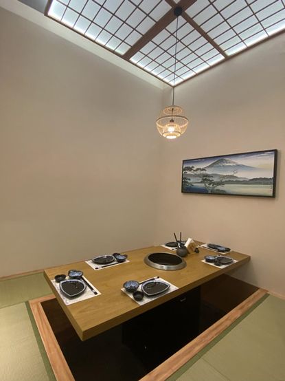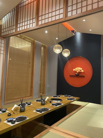 该项目从策划、到执行历经一年半时间,餐厅的设计由菲悦国际出品,张政对于合作伙伴和最终的成果都感到十分满意。他表示,菲悦国际非常优秀,在效率和完成度方面表现出众。以“网红日料店打卡新地标”为愿景,酒店对于旬膳里的设计装修精益求精,尽善尽美。餐厅整体采用了原汁原味的日式设计风格,从材料、到格局、到配套的装饰和餐具,都完美体现了日式审美趣味。原木的榻榻米包间内设镂空的木窗、精巧的小吊灯,采光充分的同时又与浮世绘风格的装饰画相得益彰,包间的设计既满足多人聚会的需要,又能保障客人用餐的私密性。在菲悦国际的助力下,张家口国际大酒店的旬膳里拥有了“网红打卡地”的基本配置。